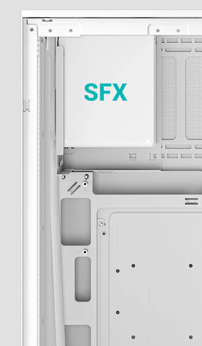 ラップアラウンドメッシュパネルと最大 6 つの 120mm ファンの配置により、コンパクトなシステム内部へ冷たい空気が流れ、熱を取り除くことが効果的に保証されます。最大の熱ハードウェアは、側面に 360mm の AIO液体クーラーまたは CPU に 174mm のヒートシンクを搭載できます。