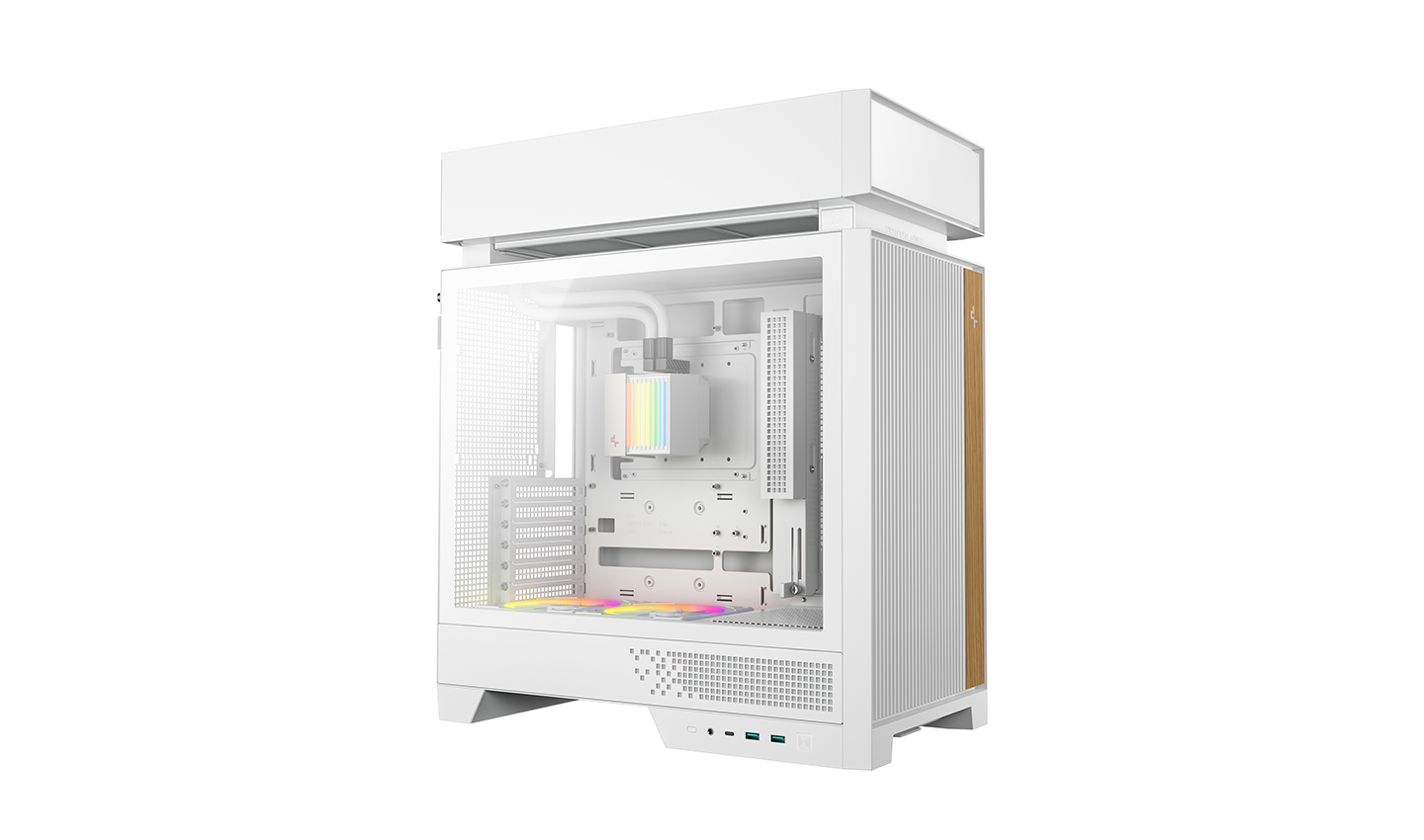 CL6600 WH は液冷時代のためにケースデザインを再考しました。熱ゾーンとエアフローを物理的に分離することによって、従来の構成では解決できなかった熱の蓄積と交差干渉を防ぎます。また、高度な 360mm 液冷クーラーとデュアルボトム ARGB ファンが付属しており、強力なパフォーマンスを提供し、鮮やかな内部を作り出します。